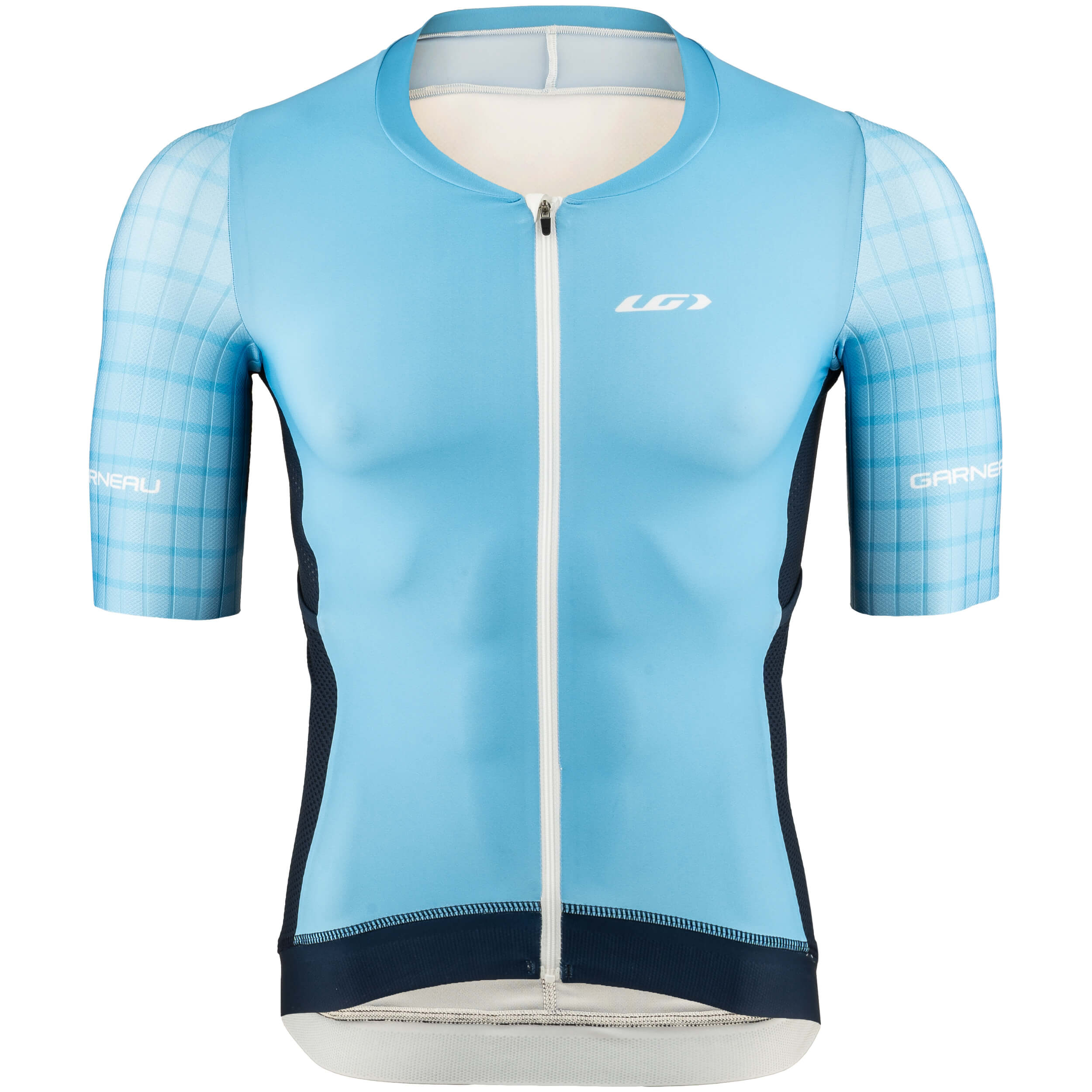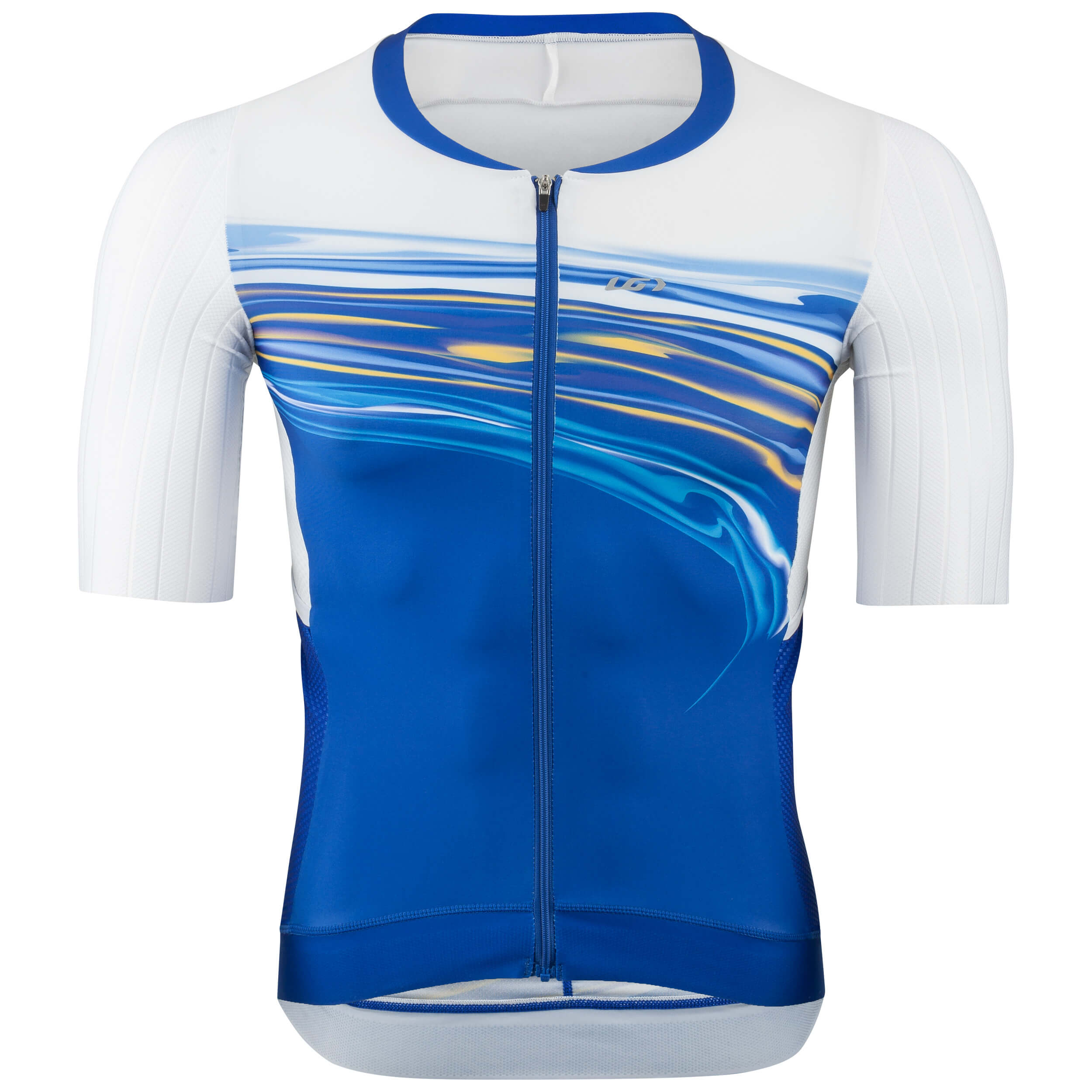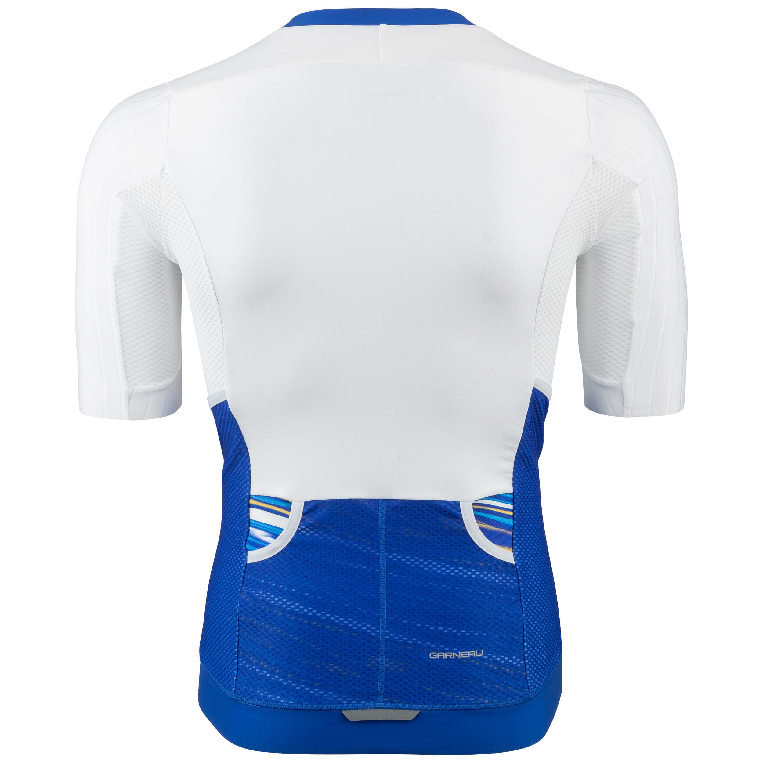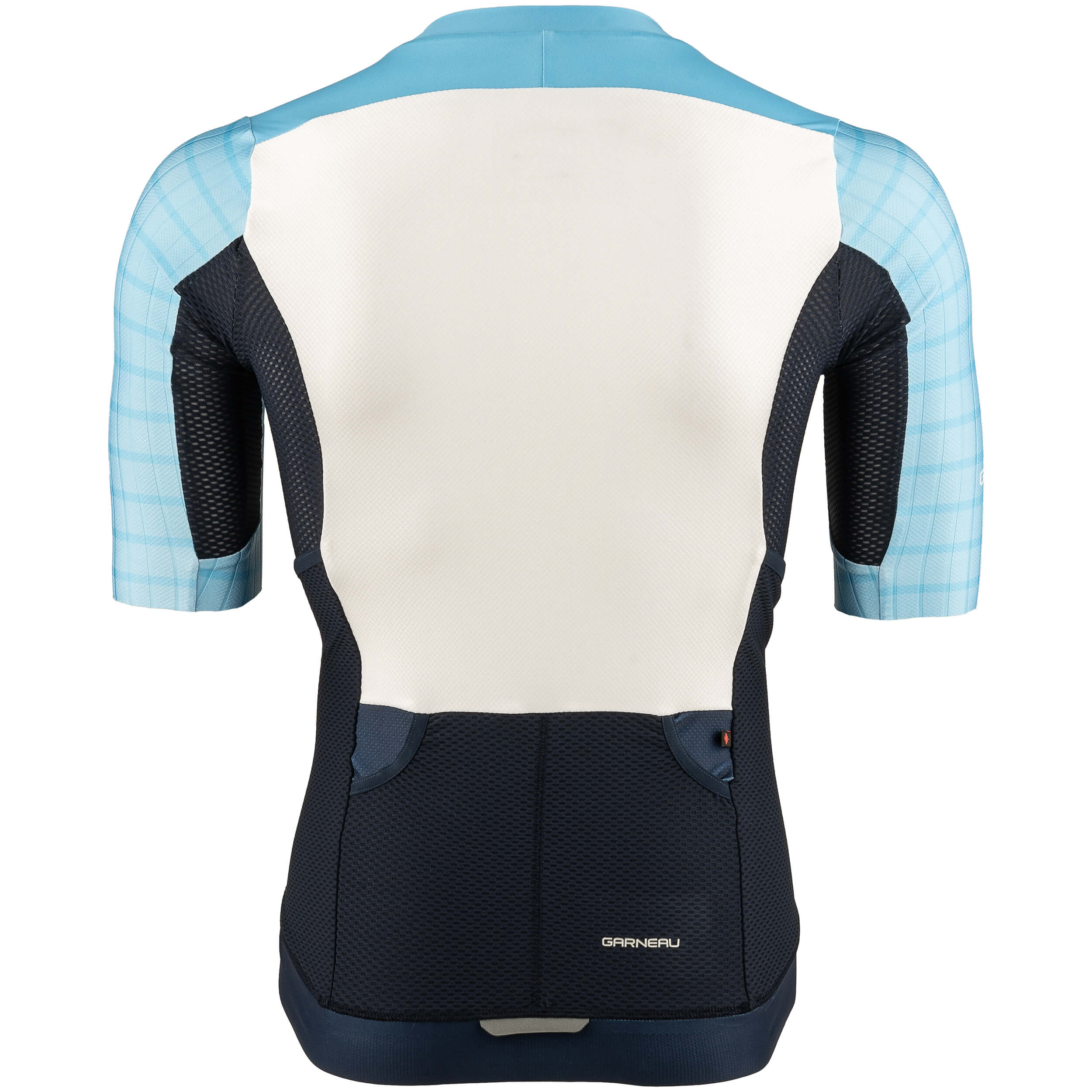 Research in the wind tunnel has proven the Speed Tech fabric to be the fastest out of more than 180 fabrics. It is now featured on the Aero Tri Jersey's shoulders and back for minimum air drag on wind-sensitive areas. Since nutrition is as important as the swim, bike and run during a triathlon, new angled back pockets offer plenty of storage for bars and gels while preventing any loss during the race thanks to a tight elastic opening. Fill the ice pockets located near the common iliac artery with ice from the feed zone to help blood vessels stay cool.