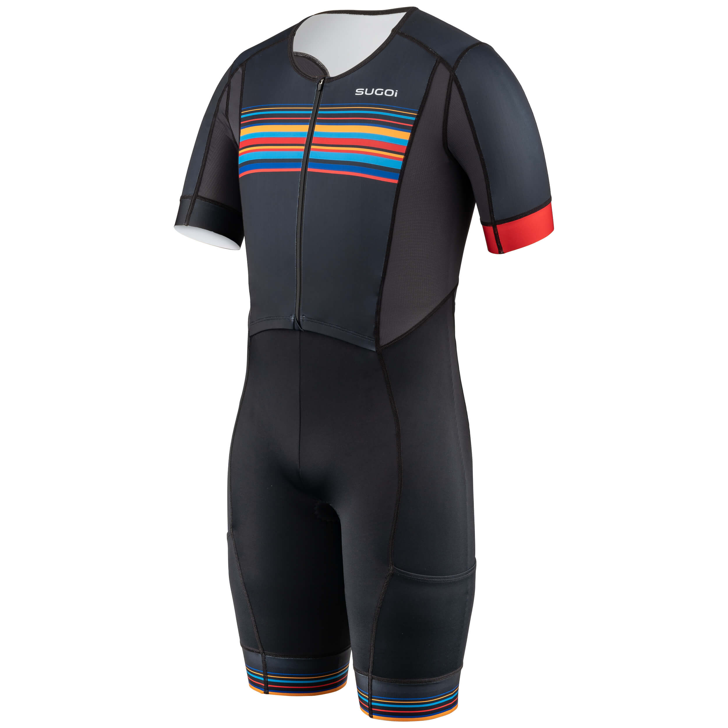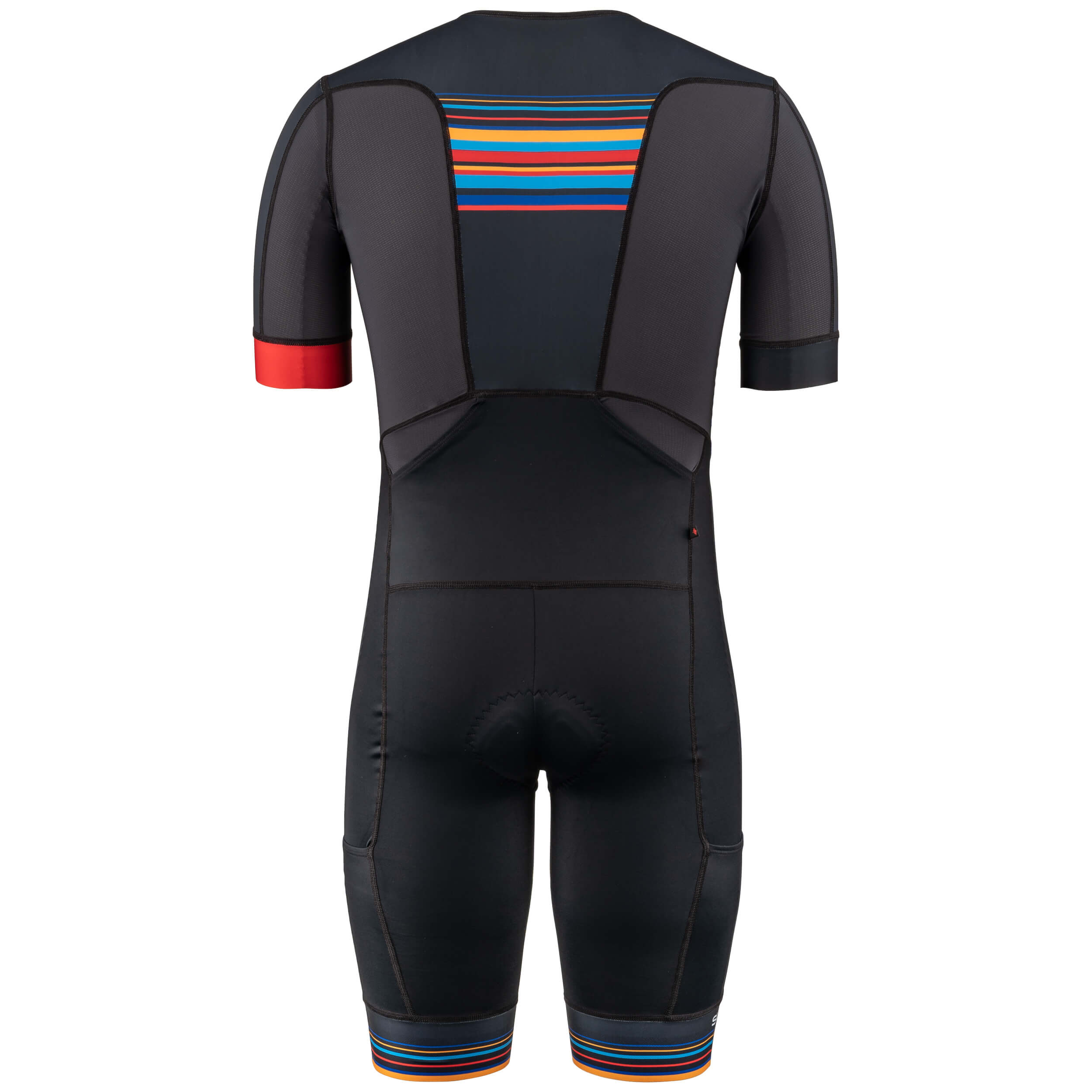 The RPM Aero Tri Suit is designed with aerodynamic, breathable and quick-drying fabrics and construction for ultimate performance and plenty of storage for essentials. The design includes Speed Mesh side panels for breathability and TriFlex fabric for moisture wicking, while a laser-finished grip strip, anti-friction seam placement and TriLite Pro chamois provide lightweight comfort and support. Reflective logos add visibility.