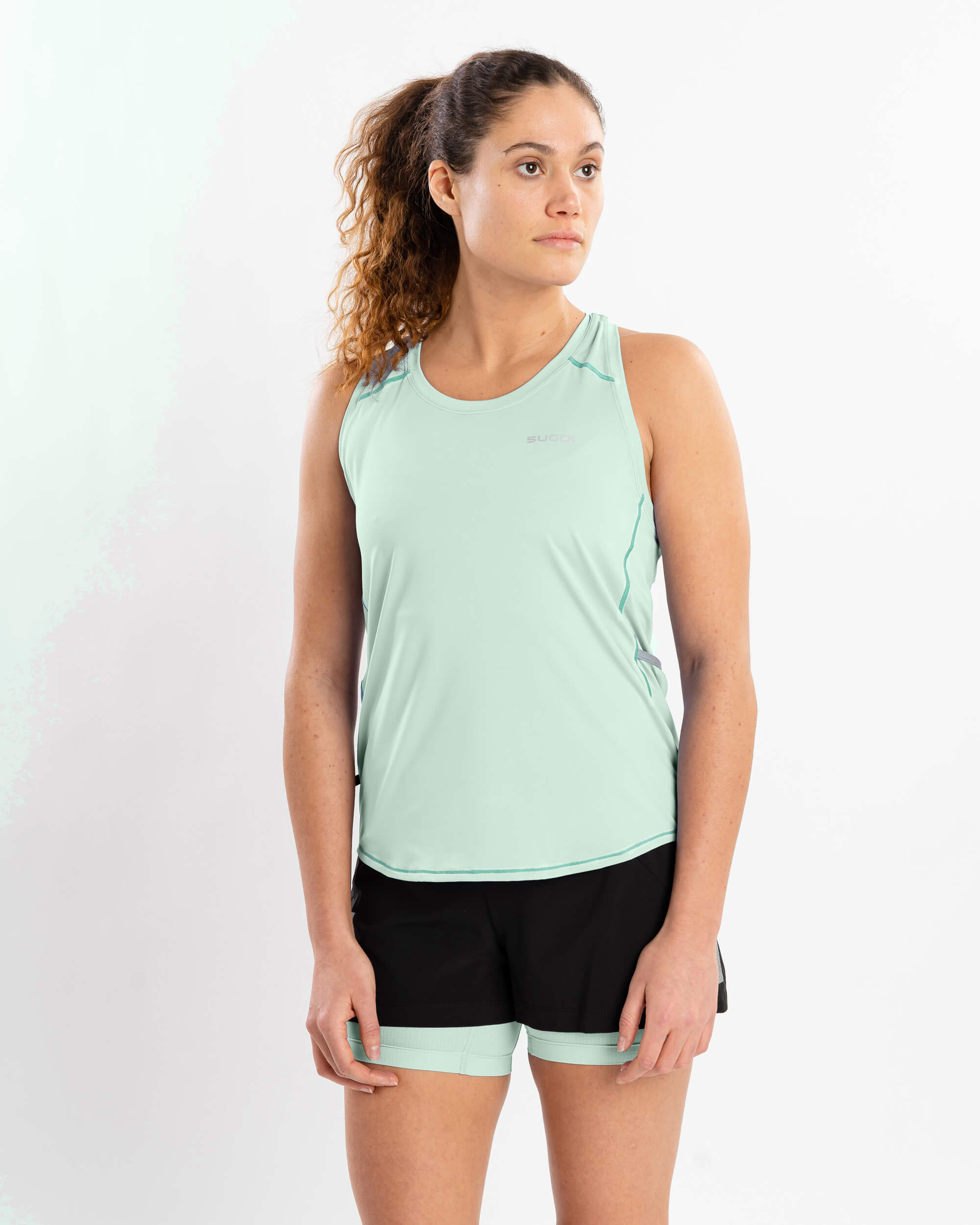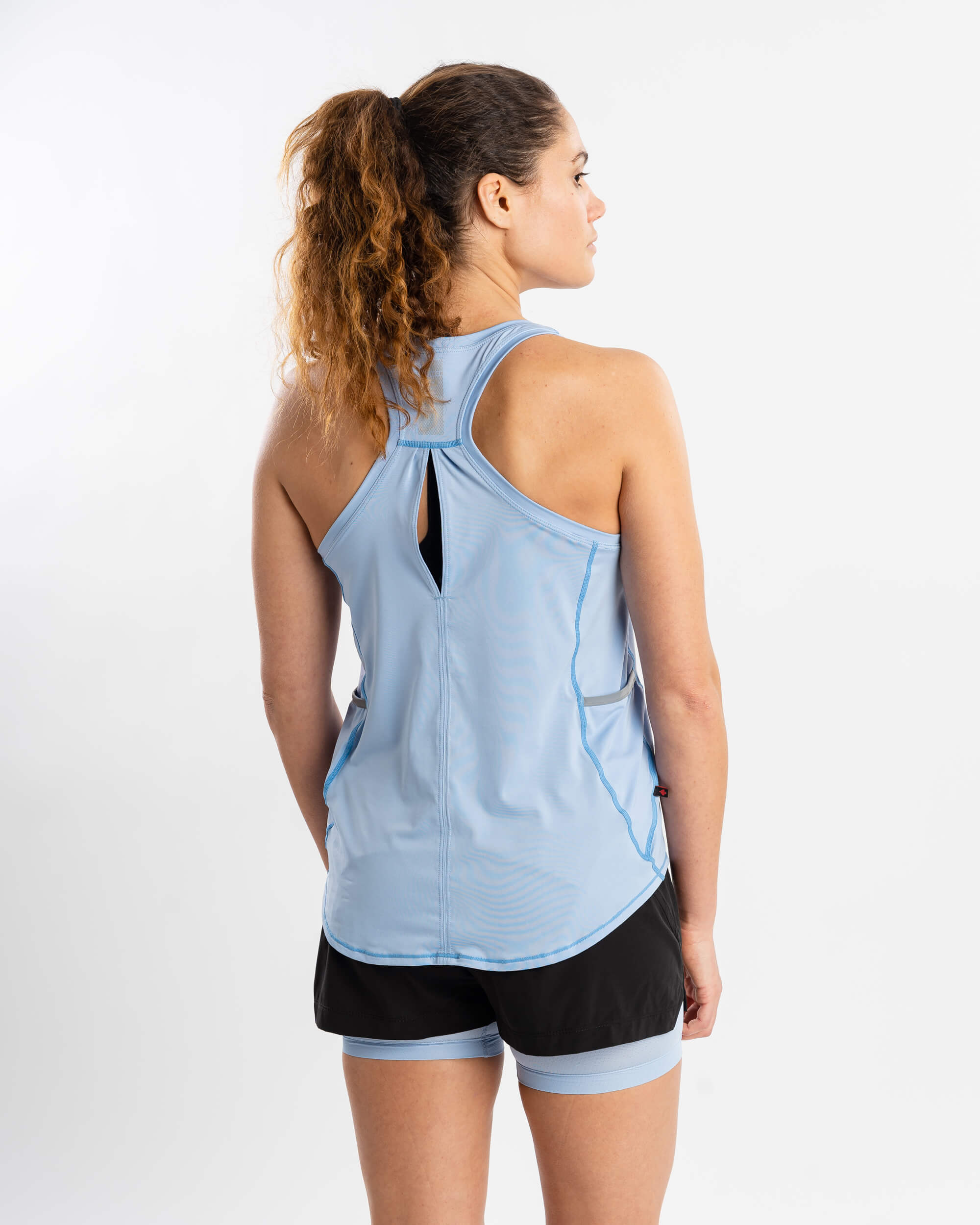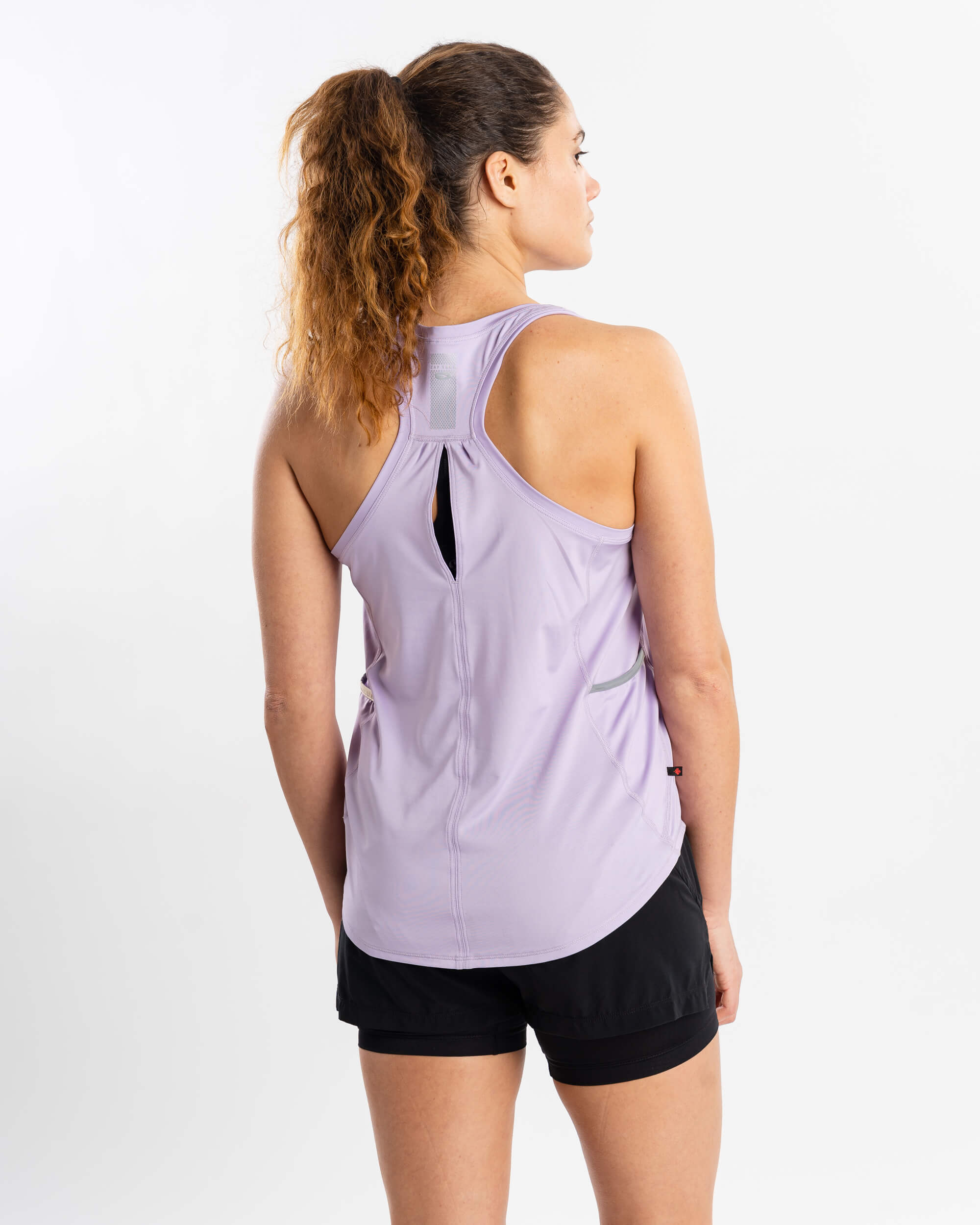 This ultra-soft tank is designed with contemporary styling and flat seams for a comfortable fit, perfect for active hot weather days. It features Xylotol cooling technology, keyhole opening at back for added ventilation and two side pockets for convenience.