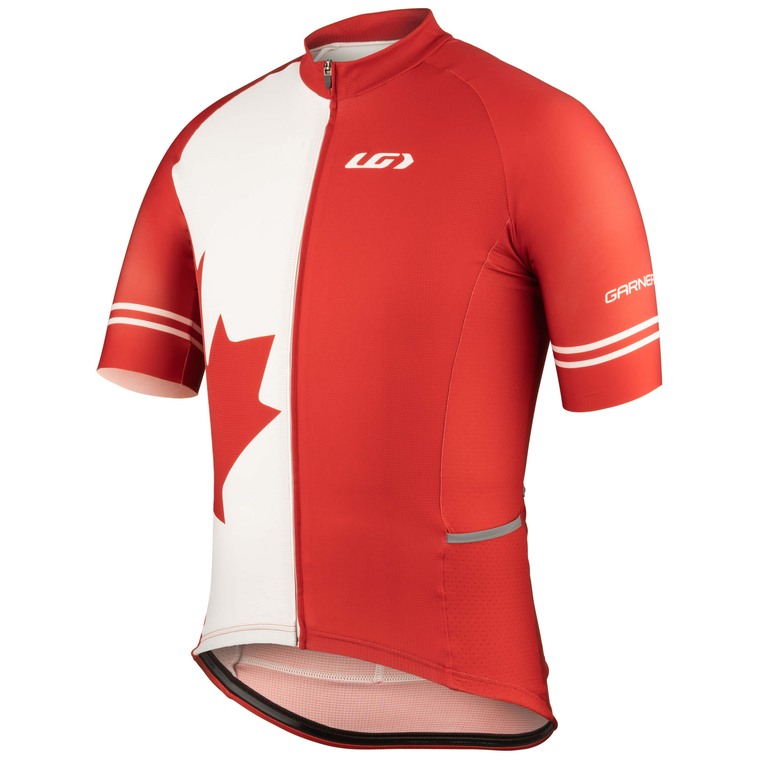 En plus de pouvoir porter fièrement vos couleurs nationales, vous pourrez profiter de la technologie AirDry 100. Ce tissu ultra performant et léger vous protégera du soleil en tout temps. Les côtés du maillot vous procurent une aération optimale afin de réguler l'humidité et la sueur produites par les efforts d'une course à vélo.