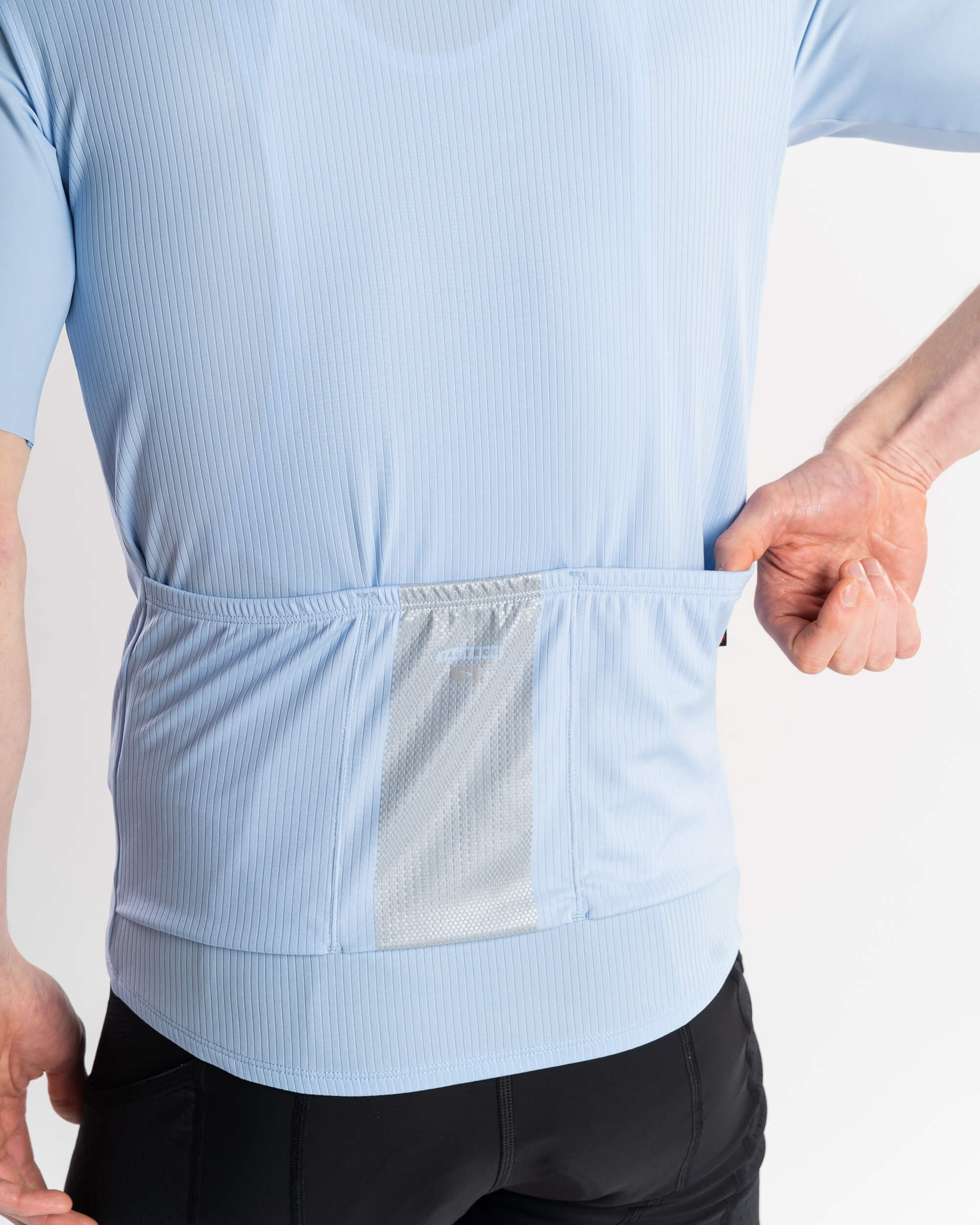 Our Standard Fit Essence Jersey is designed to provide maximum comfort and performance. Made with Airline 100 ECO Fabric, it offers moisture management and breathability. It features a three rear pocket design to store your essentials and a full-length zipper for ventilation, along with a light silicone gripper at the hem for a secure fit.